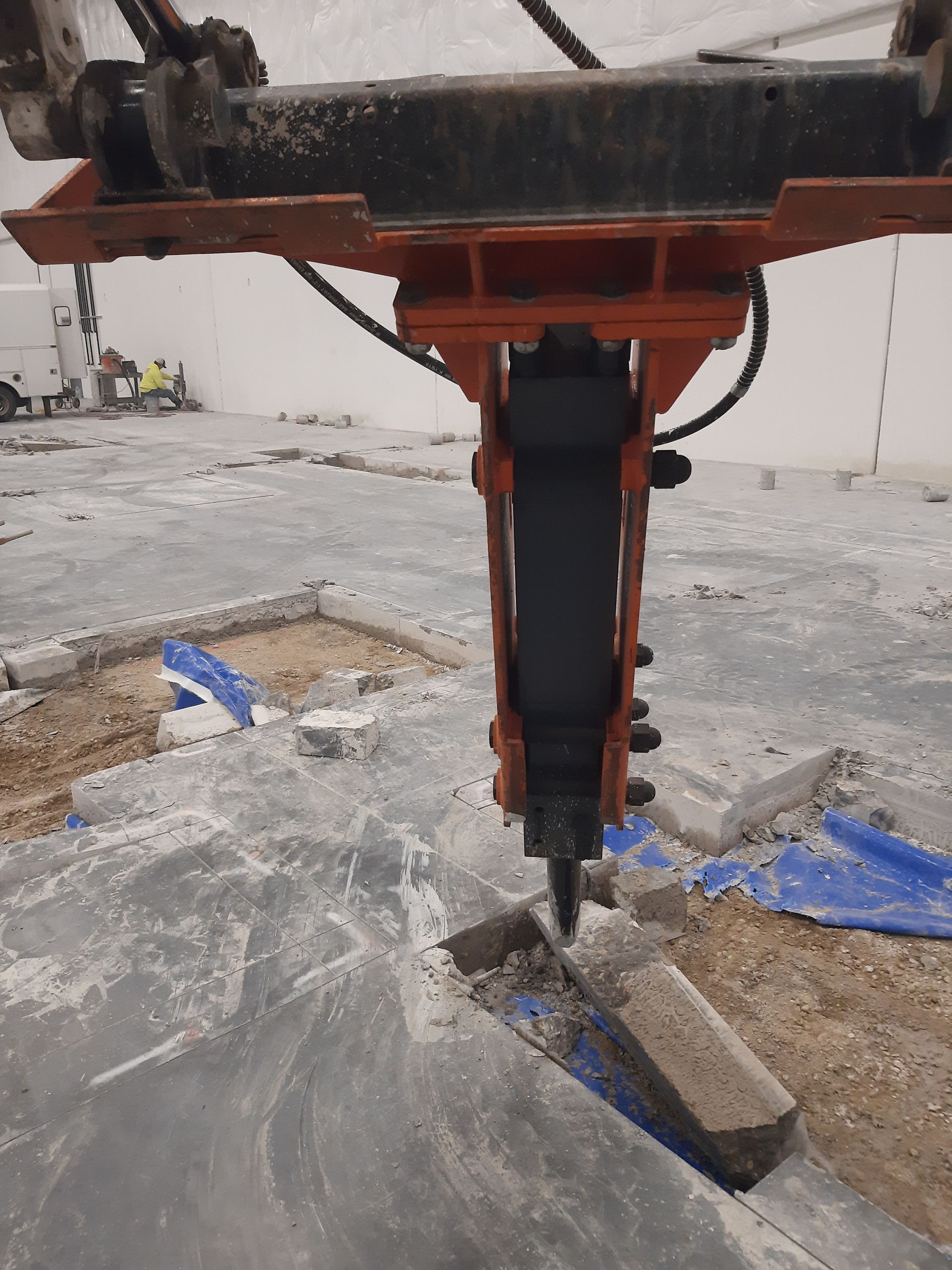 - Removing the cement in a downstairs bathroom to move around the plumbing